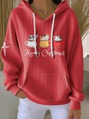 Women’s Christmas Cute Cat Print Casual Hoodie